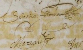 1656 : signatures sur le registre paroissial de Pleyben de Guillaume Le Moulin et Guillaume L'Haridon.