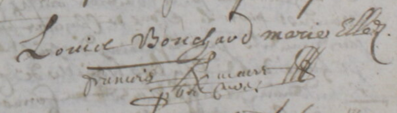 - La premiere c’est un acte de convention de priseurs, pour parvenir à partage de la succession de Catherine Puzcouet, fait entre Roland Henry, son fils aisné, heritier et principal et noble, en elle procré de feu Roland Henry, son premier mary, et Charles Cariou, second mary de lad. Puscoet, ledict acte de convention en datte du 2e jour d’Octobre 1472, signé : Taillard.